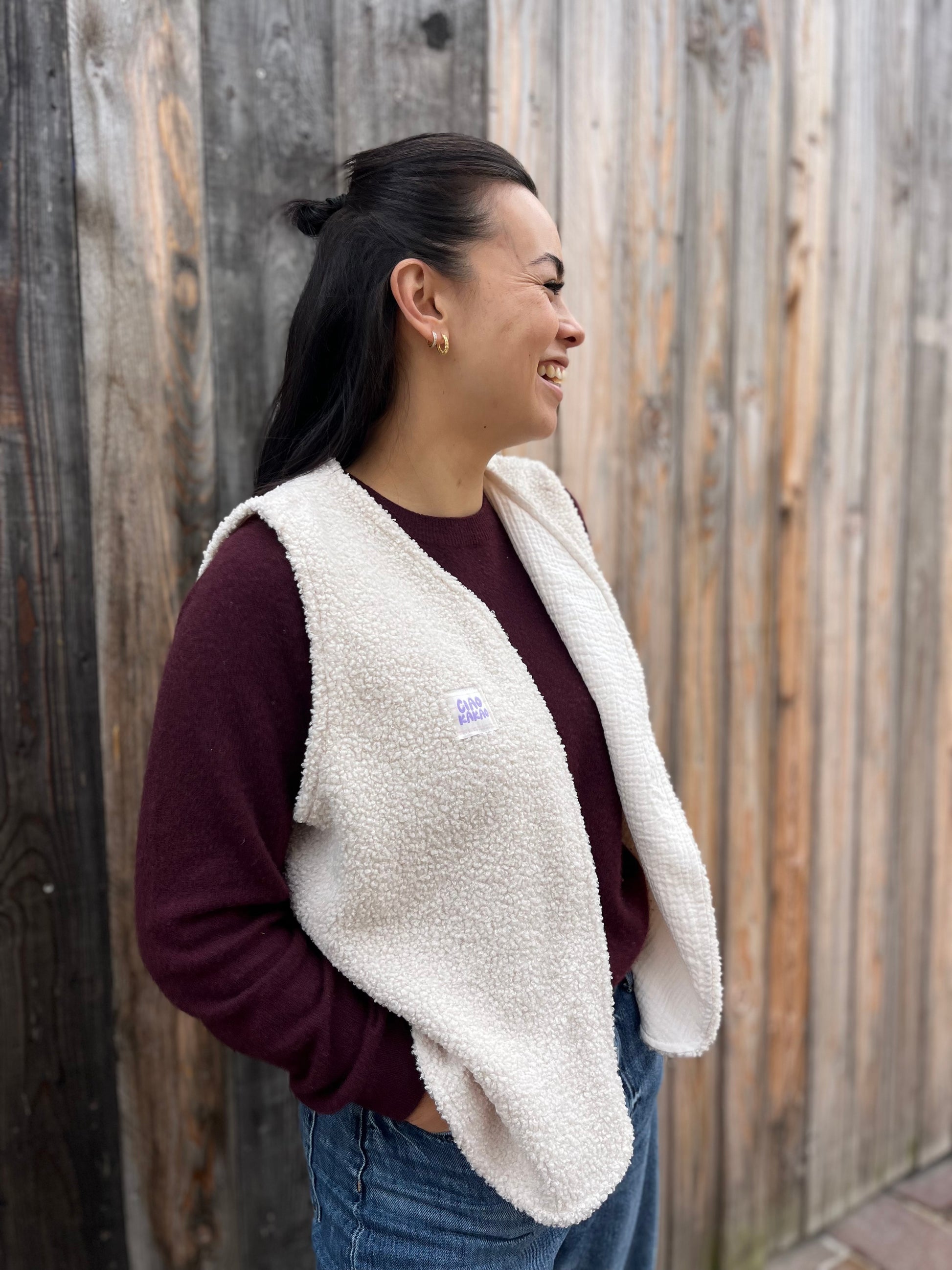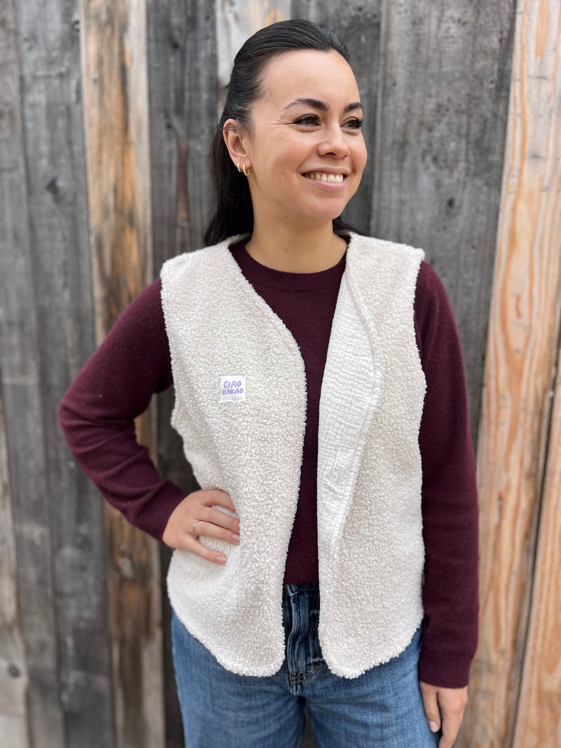 Diese Weste ist ein absoluter Must-Have für diese Saison. Diese flauschige Weste ist nicht nur super kuschelig, sondern auch angenehm leicht zu tragen. Mit ihren zeitlosen Design ist sie vielseitig kombinierbar z.b über einem Longsleeve, einer Bluse oder einen dünnen Strickpullover und verleiht jedem Outfit das gewisse Etwas. Ein echtes Fashion-Piece, das in keinem Kleiderschrank fehlen darf.