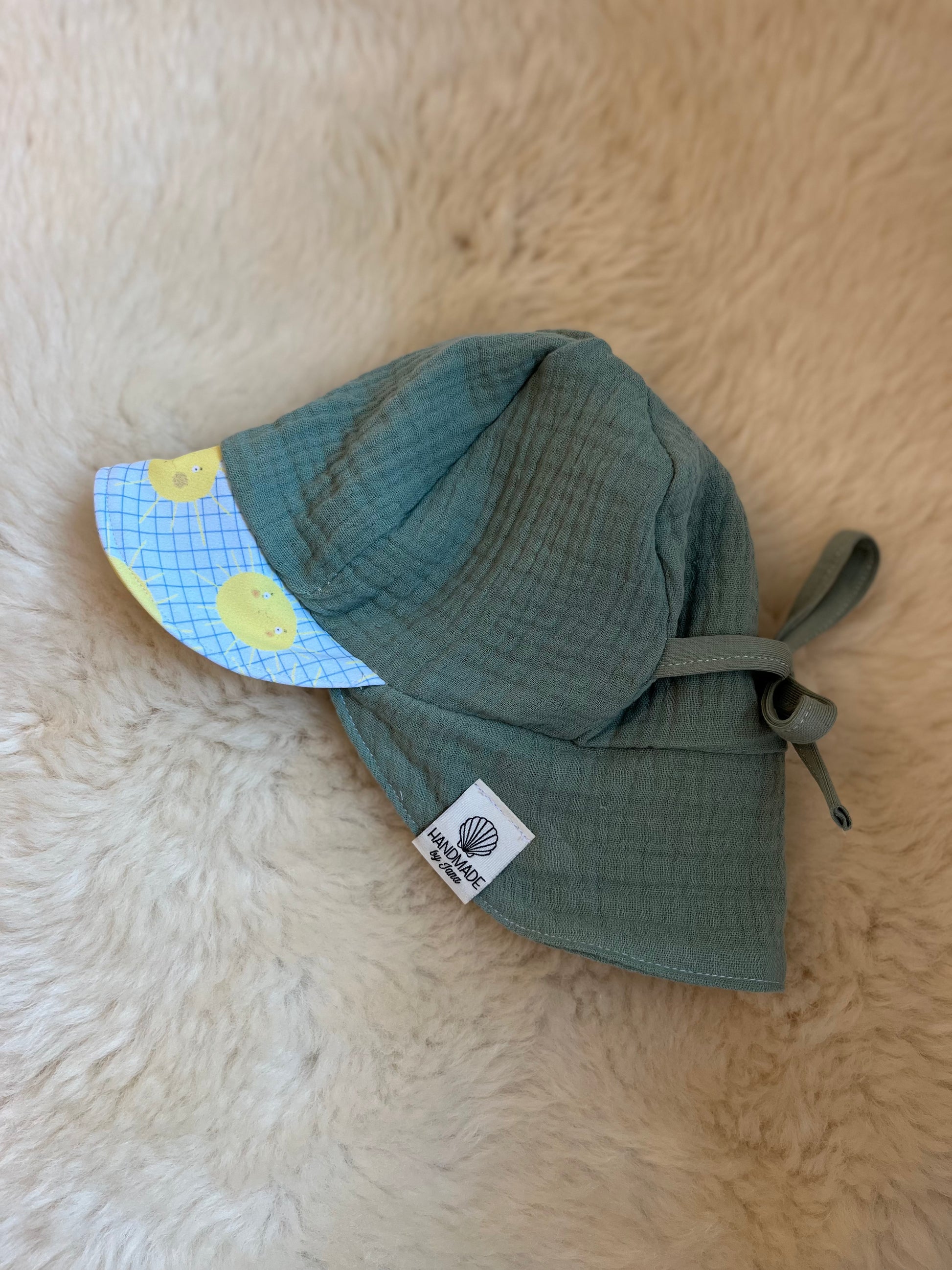 Luftiger Sommerhut für Kinder aus weicher, atmungsaktiver Baumwolle- mit liebevollem Ohren- und Nackenschutz.