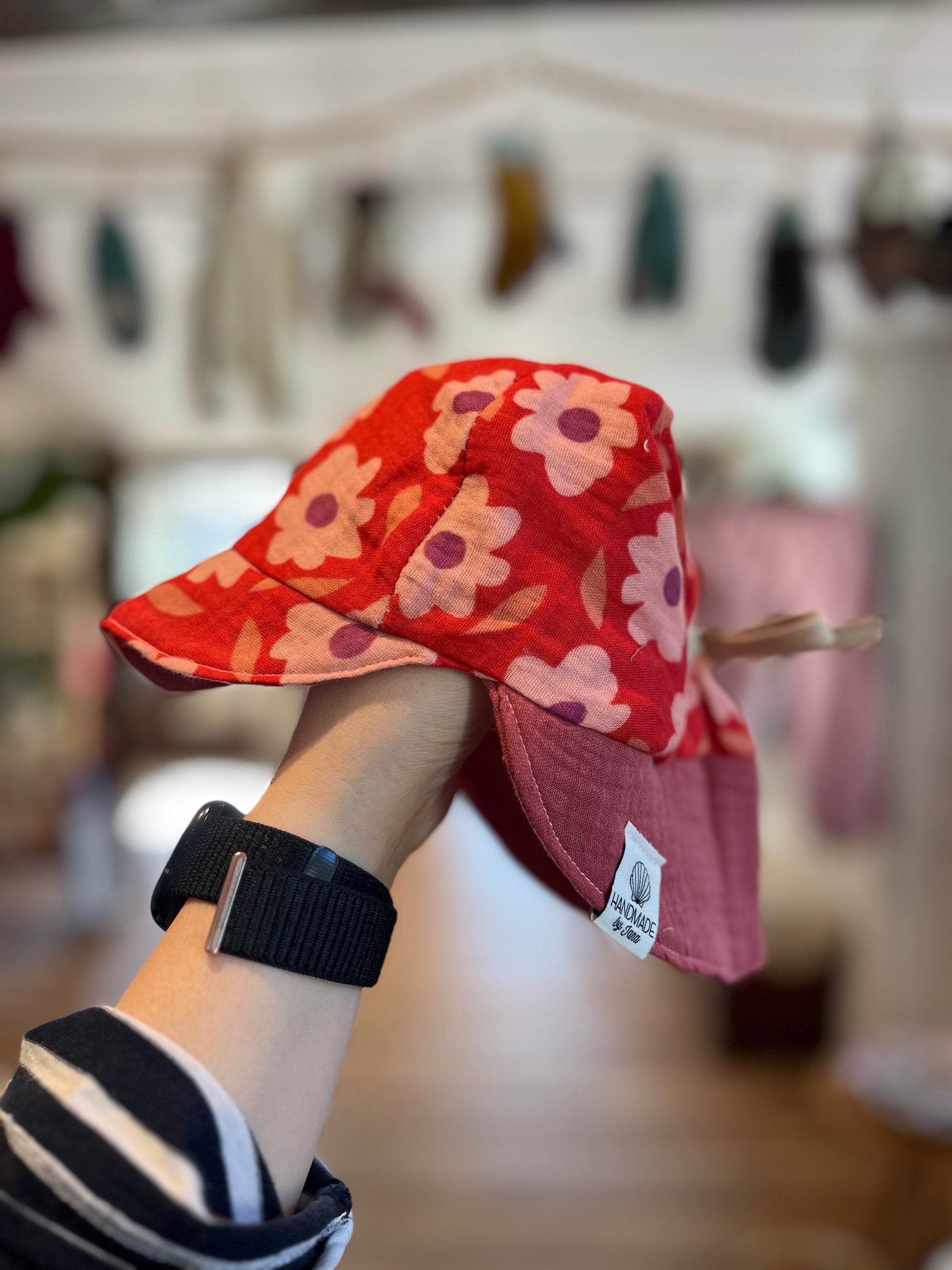 Luftiger Sommerhut für Kinder aus weicher, atmungsaktiver Baumwolle- mit liebevollem Ohren- und Nackenschutz.