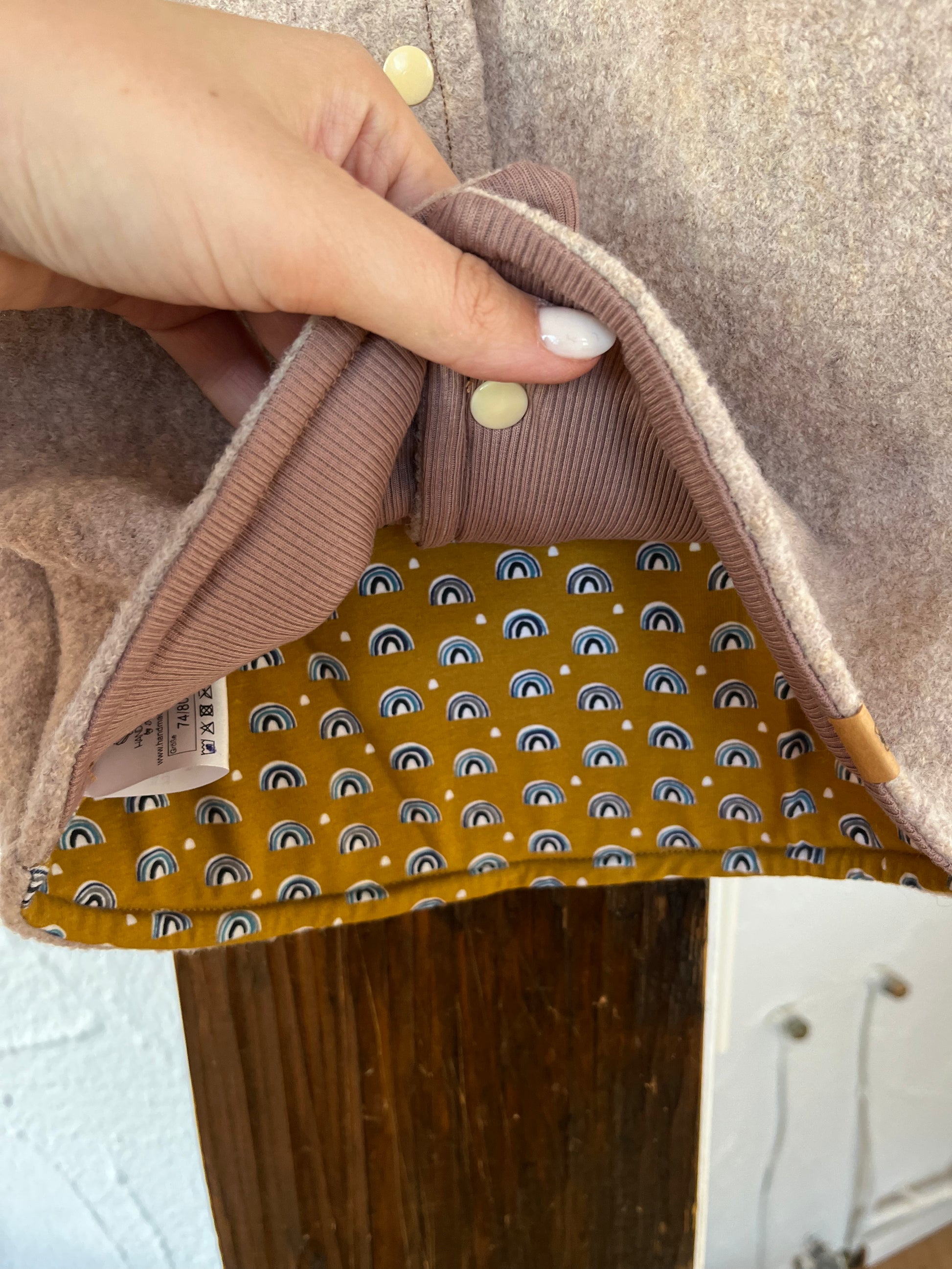 Pflegehinweis: Wollwalk nimmt kaum Schmutz auf, da die Schuppen an der Faseroberfläche Schmutz abstoßen. Daher muss die Weste nur selten gewaschen werden – ein einfaches Lüften genügt oft. Bei Bedarf Handwäsche mit kaltem Wasser. Nicht im Trockner trocknen oder schleudern. Leichte Verschmutzungen können vorsichtig ausgebürstet werden.