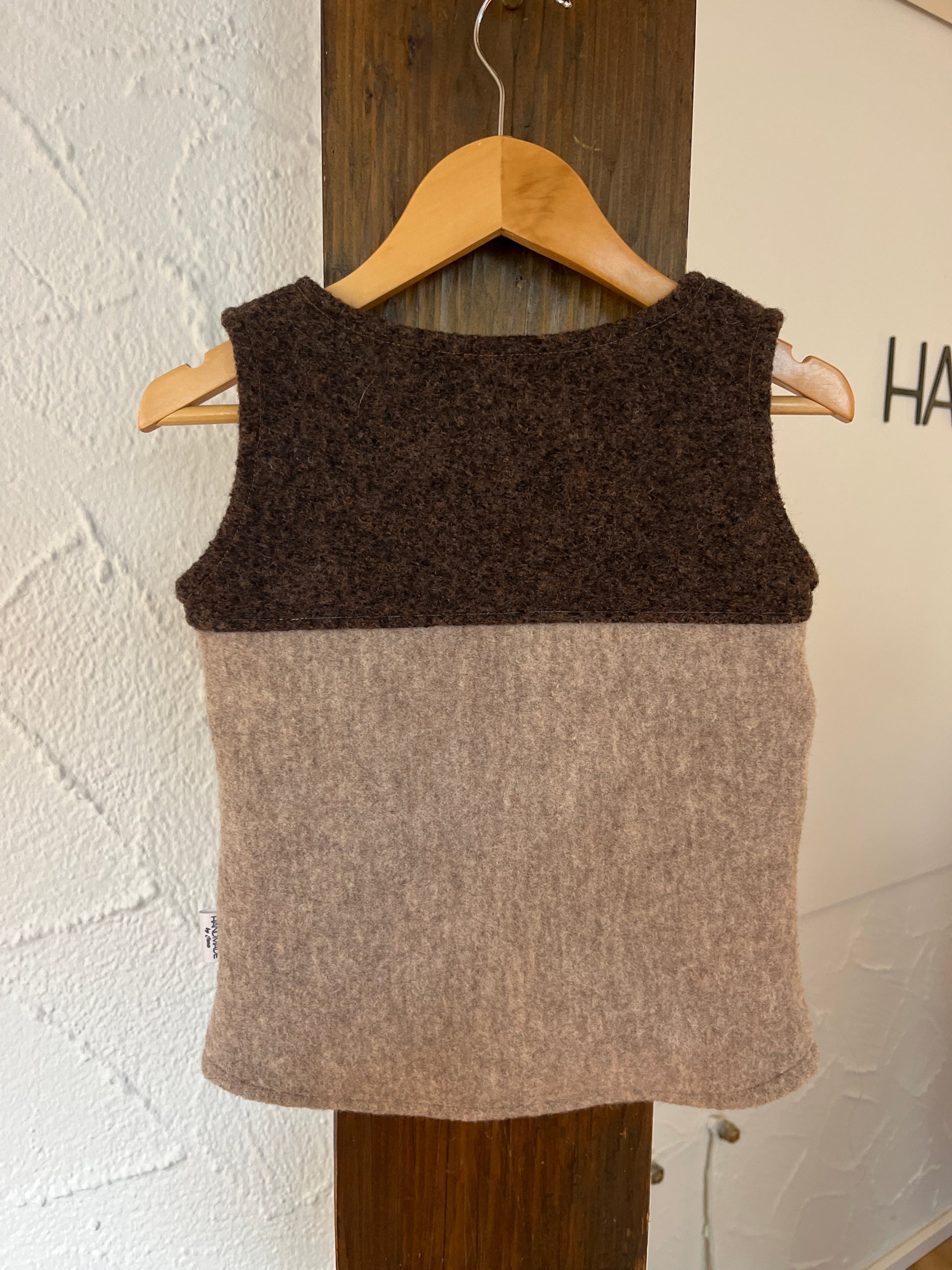 Pflegehinweis: Wollwalk nimmt kaum Schmutz auf, da die Schuppen an der Faseroberfläche Schmutz abstoßen. Daher muss die Weste nur selten gewaschen werden – ein einfaches Lüften genügt oft. Bei Bedarf Handwäsche mit kaltem Wasser. Nicht im Trockner trocknen oder schleudern. Leichte Verschmutzungen können vorsichtig ausgebürstet werden.